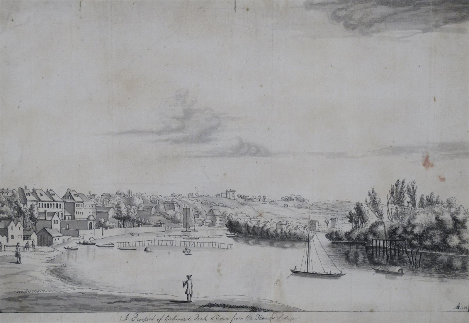 English School 1748 A Prospect of Richmond Park and Town from the Thames side Signed with a...