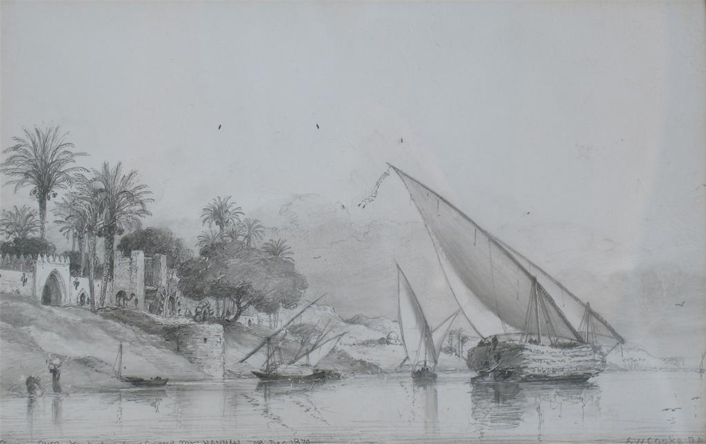 EDWARD WILLIAM COOKE (1811-1880): Nine pencil drawings comprising: Hastings, signed, inscribed and dated April 24th 1835, 54 x 30.5cm (1.5 x 12in); At Buikstook, 6.5 x 12cm (2.75 x 4.75in); Plymouth Citadel, inscribed and dated Sept. 1848, 5.5 x 17.5cm (2.27 x 7in); Breakwater Plymouth, inscribed and dated 1848, 6 x 17.5cm (2.25 x 7in); Amsterdam, inscribed, 7 x 16cm (2.75 x 6.5in): Venice Lagoon, signed, 7 x 21cm (2.75 x 8.25in); On the Nile, signed and inscribed 'From E.W. Cooke to his dear friend Mrs Hannah, 28th Dec 1879', 12.5 x 20.5cm (5 x 8in); The Beemister Hills near Hoorn, signed, inscribed and dated, Sept, 10 x 17cm (4 x 6.75in); Rochester, inscribed, 20 x 75cm (8 x 10in) (9) ++ Generally good; On the Nile poor.