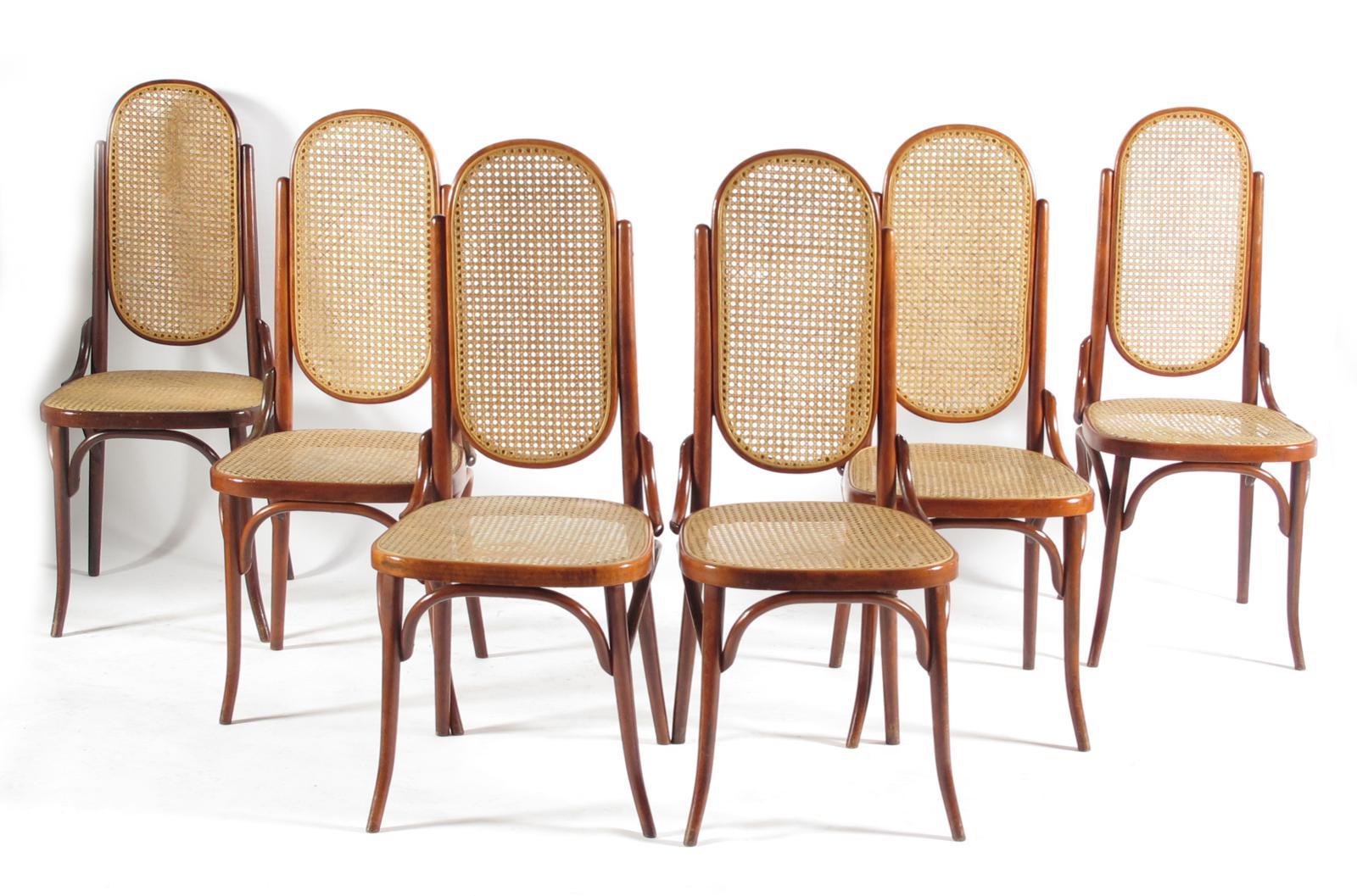 A set of six bentwood chairs, probably Thonet, each with cane seat and back panels, unsigned 102cm. high