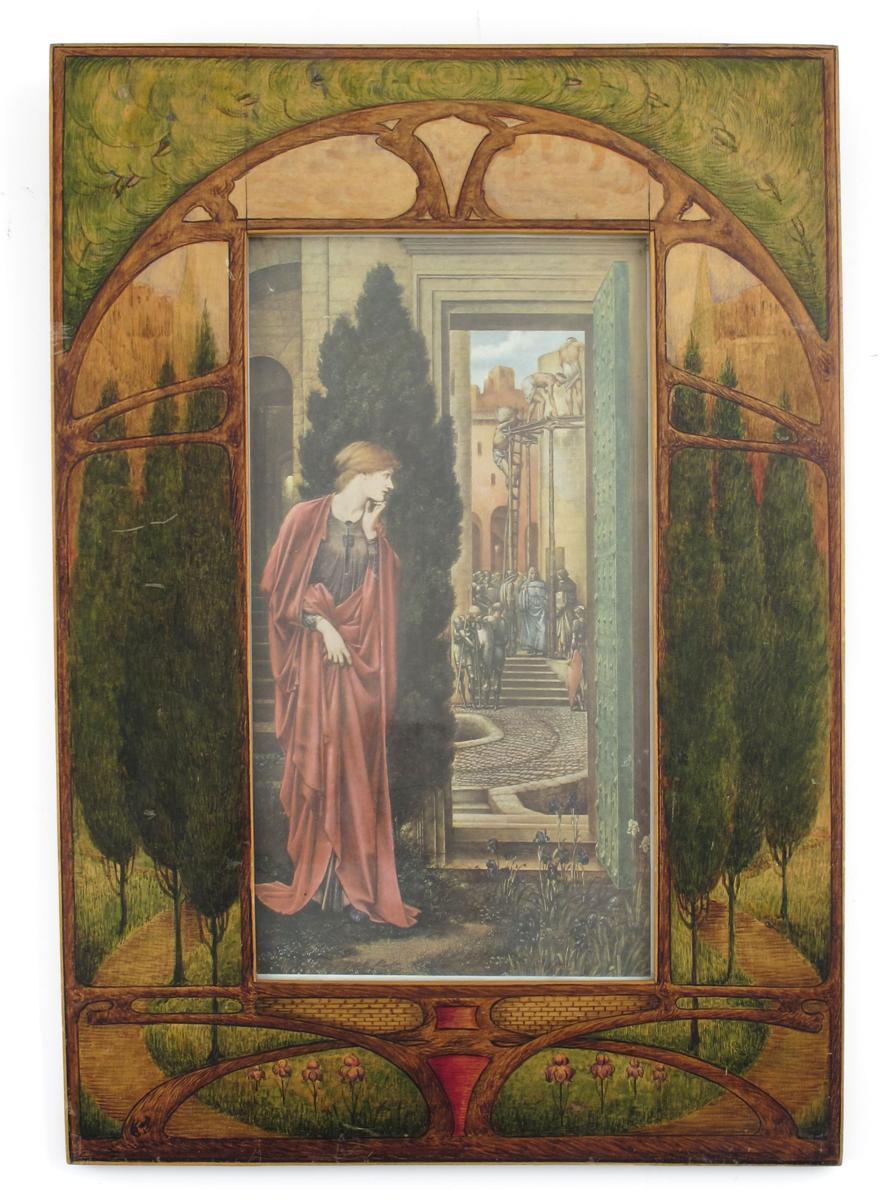 A Scottish painted wood frame, rectangular form, painted with an Italian landscape with cypress trees unsigned 50 x 34cm.