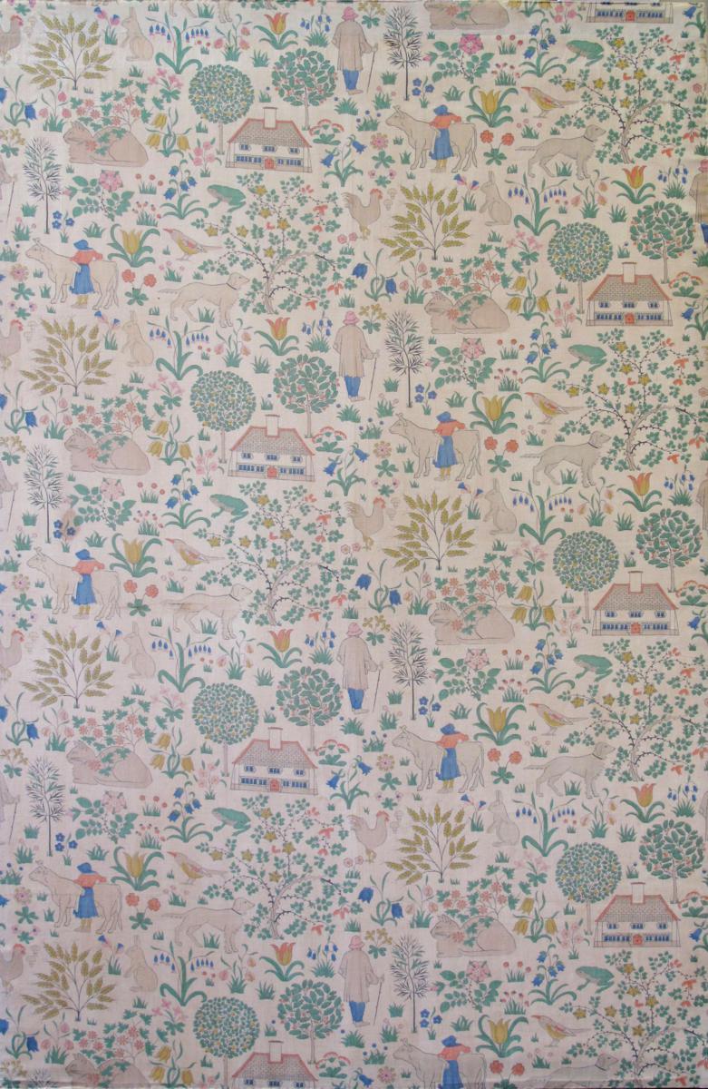 'The House That Jack Built' a printed cotton panel manufactured by Morton Sundour Fabric Ltd