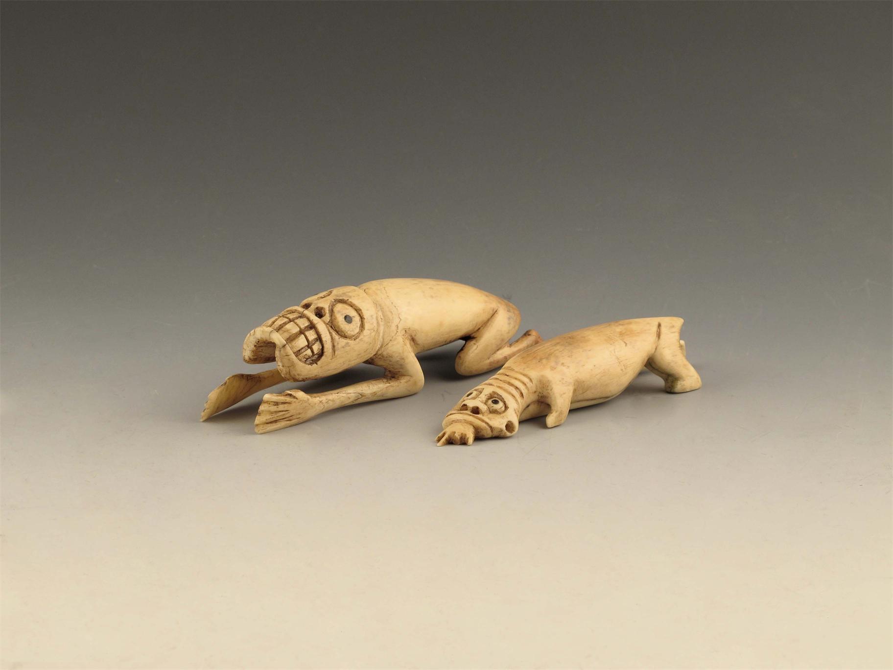 Two Inuit carved whale bone Tupilaks