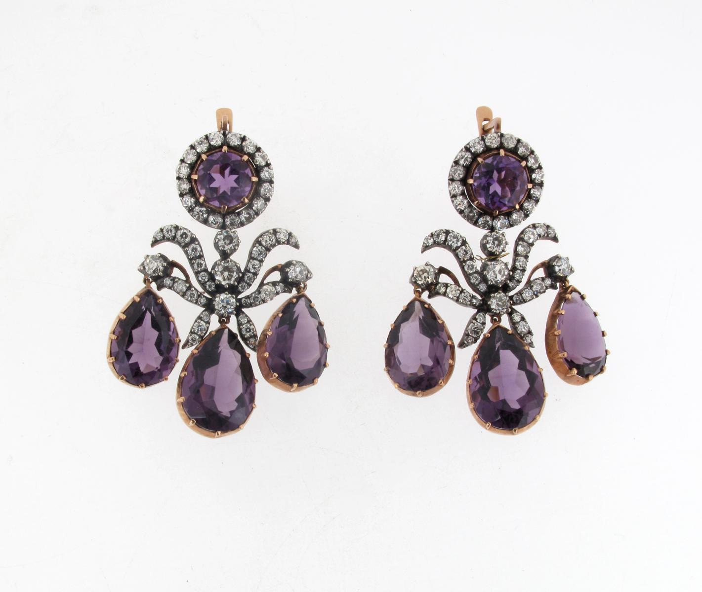 A pair of Russian amethyst and diamond girondolle earrings