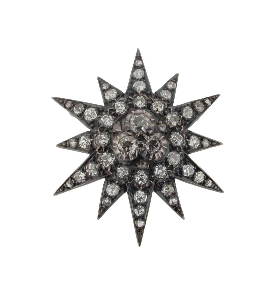 A late Victorian diamond set star brooch, set with graduated circular cut diamonds in silver and gold. 4cm wide.