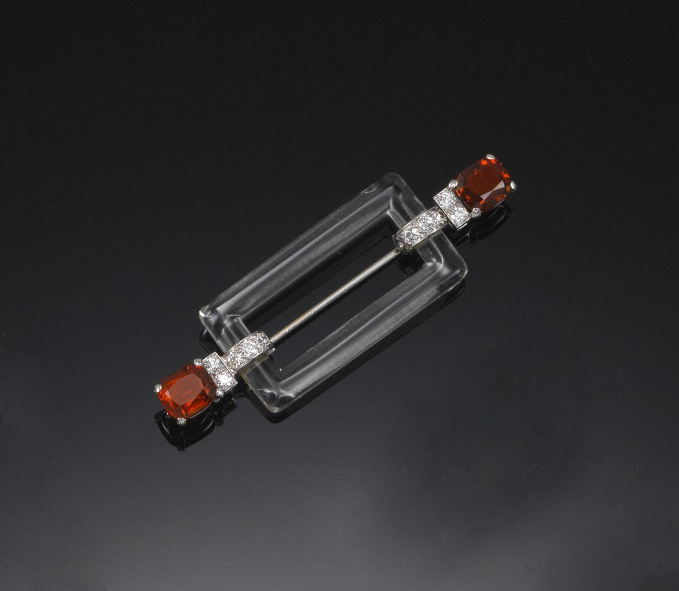 An Art Deco rectangular rock crystal brooch
