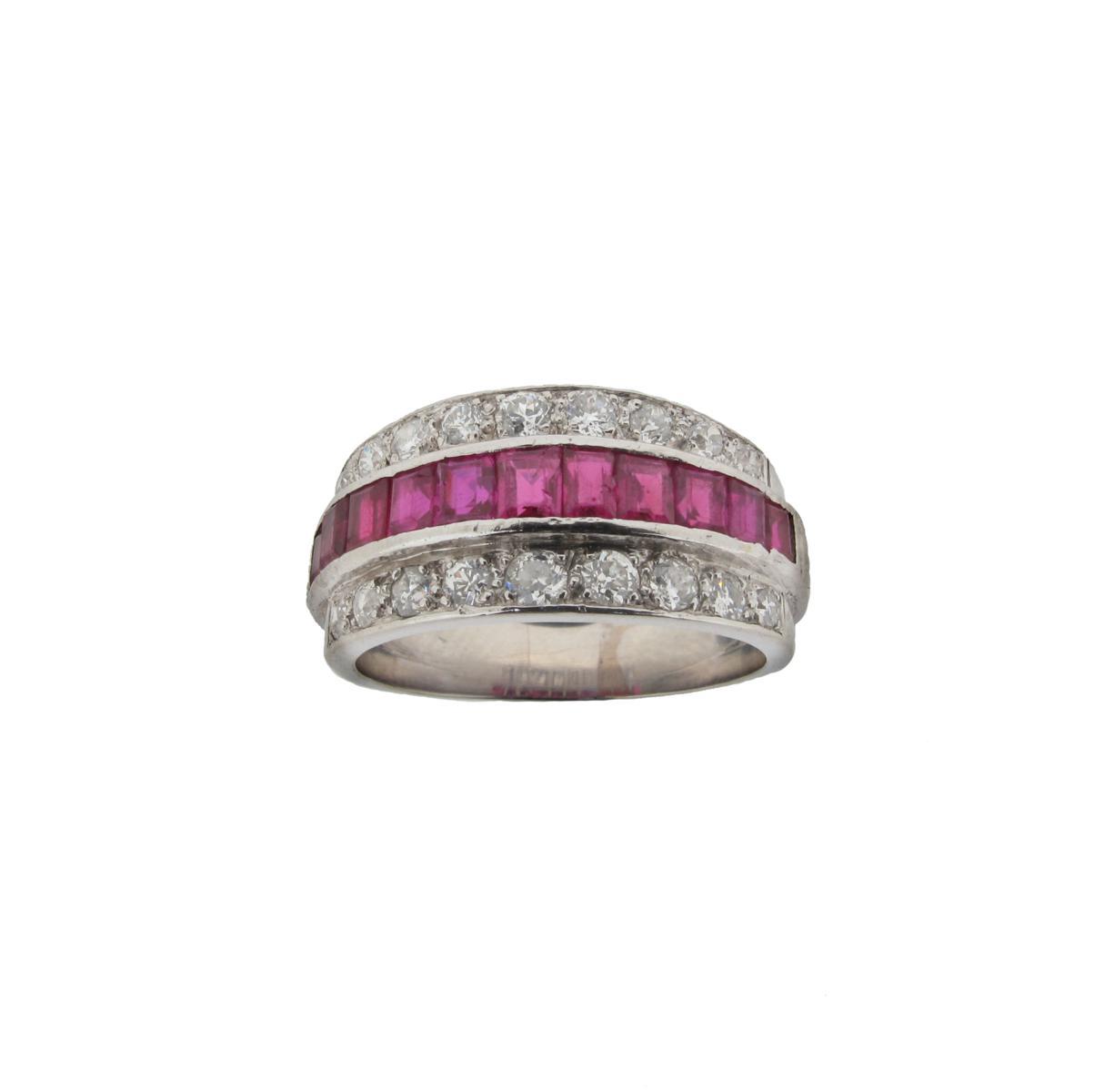 A ruby and diamond half hoop ring