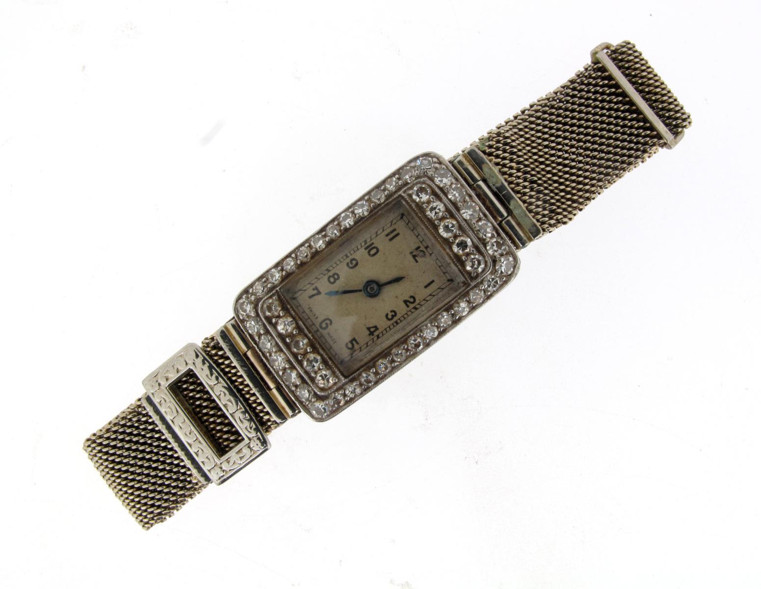 A diamond set platinum dress wristwatch