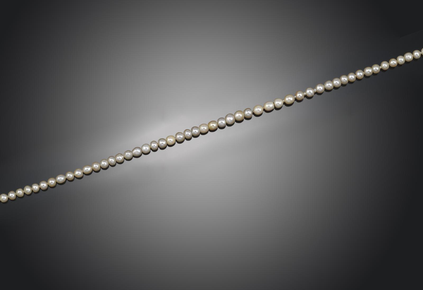 A single row slightly graduated pearl necklace