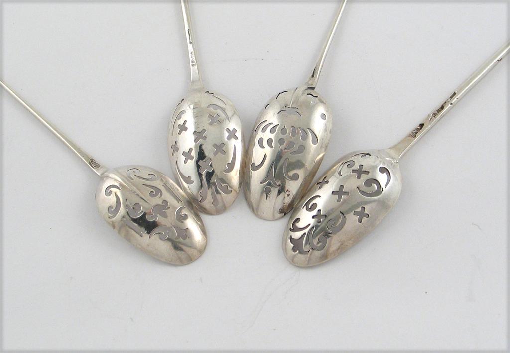 A George III mote spoon, pierced with crosslets and scrolls, probably by Thomas Wallis, London c.1765 (maker's mark and lion passant only), 5.4in (13.7cm).