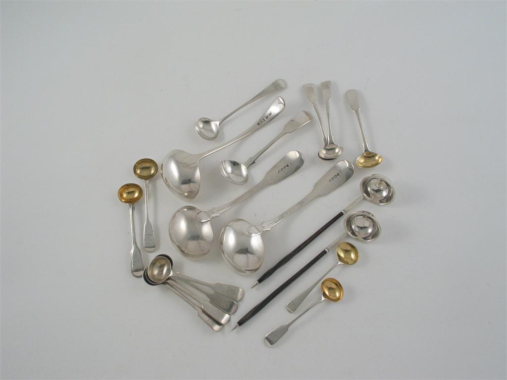 A mixed lot comprising: a pair of toddy ladles with whalebone handles