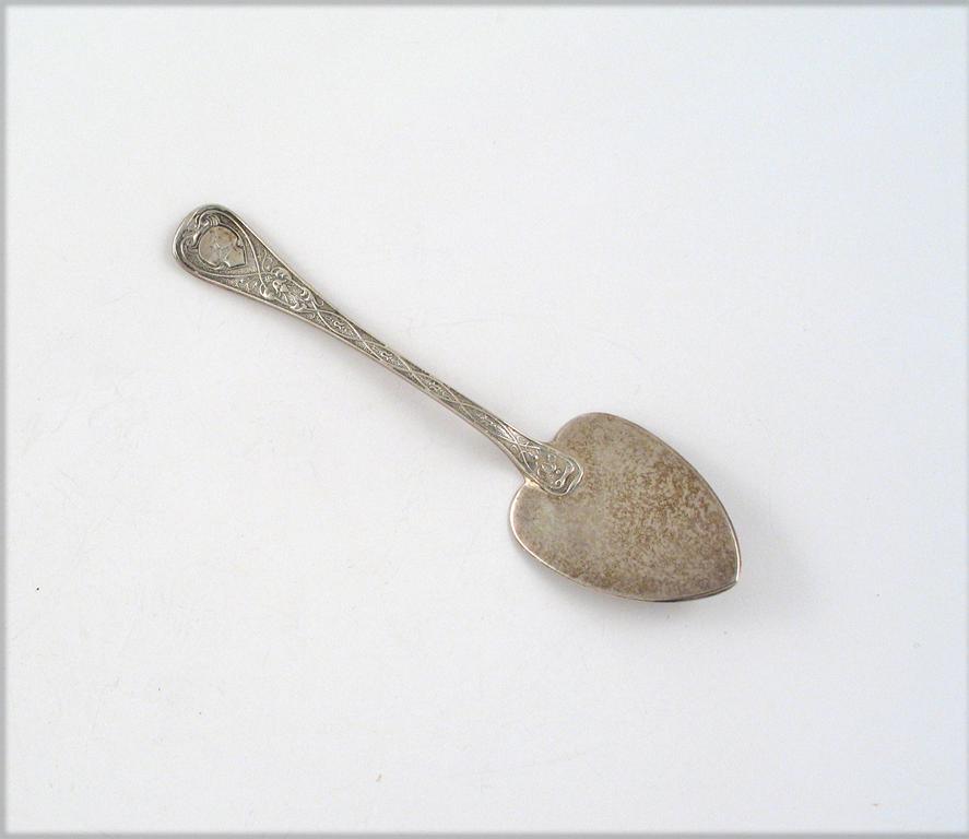 A Victorian decorative butter spade, crested, by Francis Higgins, London 1865, 1.8oz.