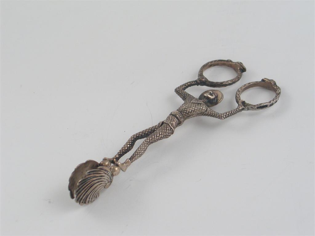 A pair of late Victorian, cast harlequin sugar nips, by G. Loveridge & Co, Birmingham 1892, 4.6in (11.6cm) long, 1oz.