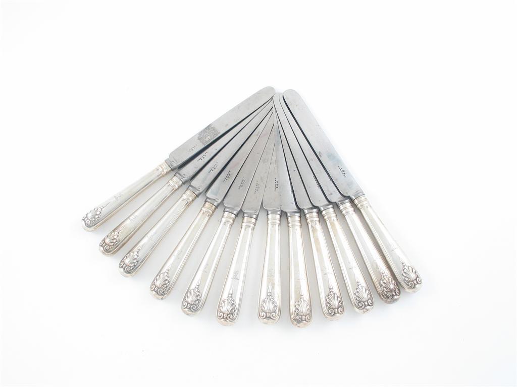 A set of twelve Victorian thread shell and drop (Lamerie) pattern tableknives