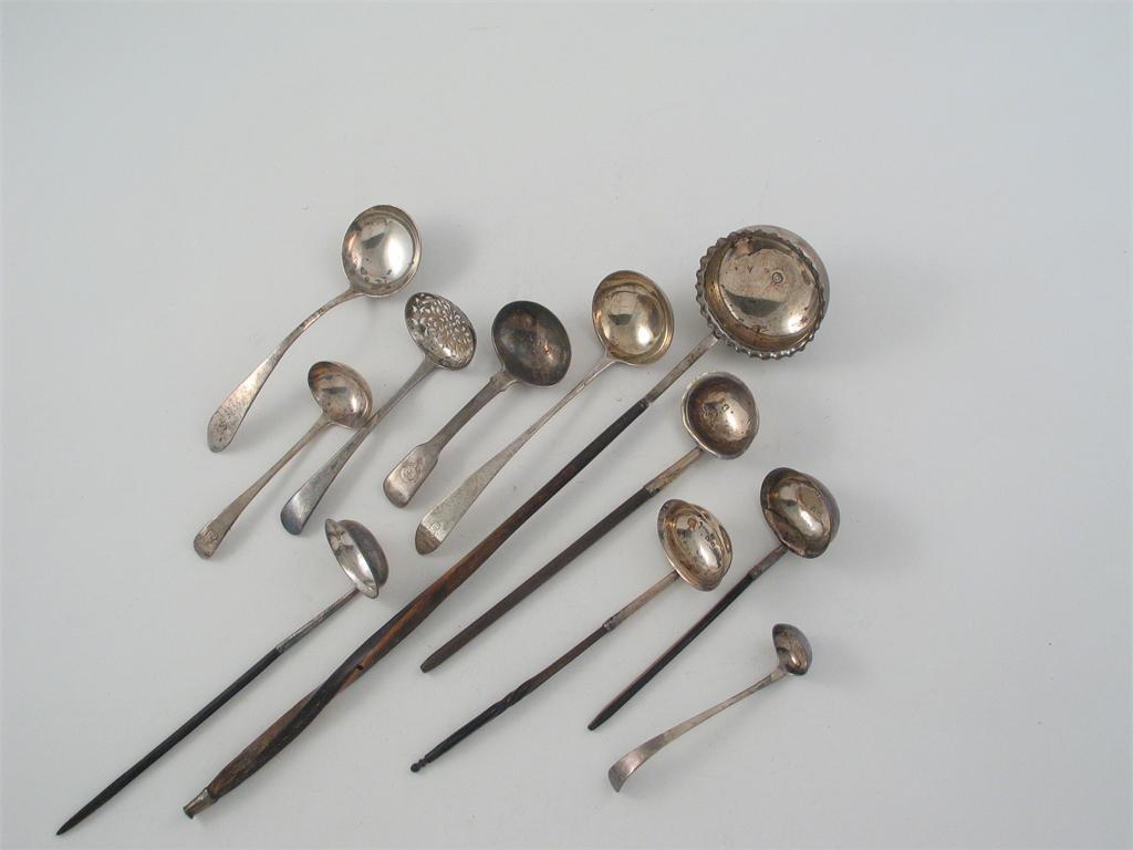 Eleven assorted ladles of mixed designs, maker's and dates (including Scottish and one Irish provincial example). (11)