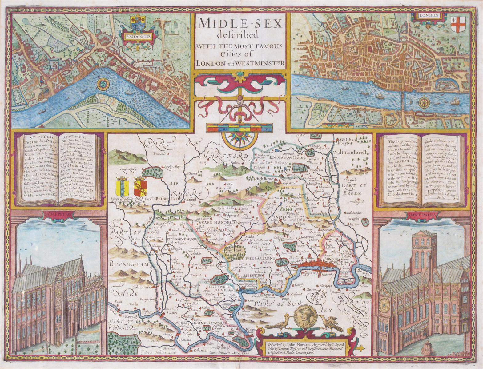 Middlesex - Speed (John), Midle-sex described, hand-coloured engraved map with inset plans of London and Westminster, 400 x 520mm, Bassett & Chiswell, [1676 or later]