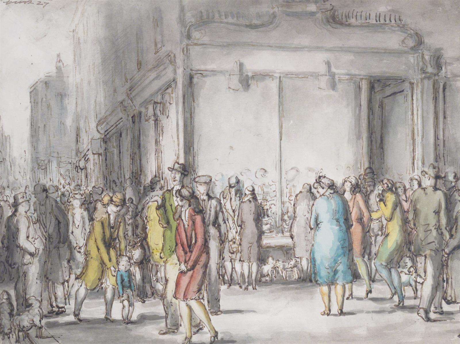 Harold Hope Read (act. 1905-1935) Window shopping Signed with initials and dated 27 Pen