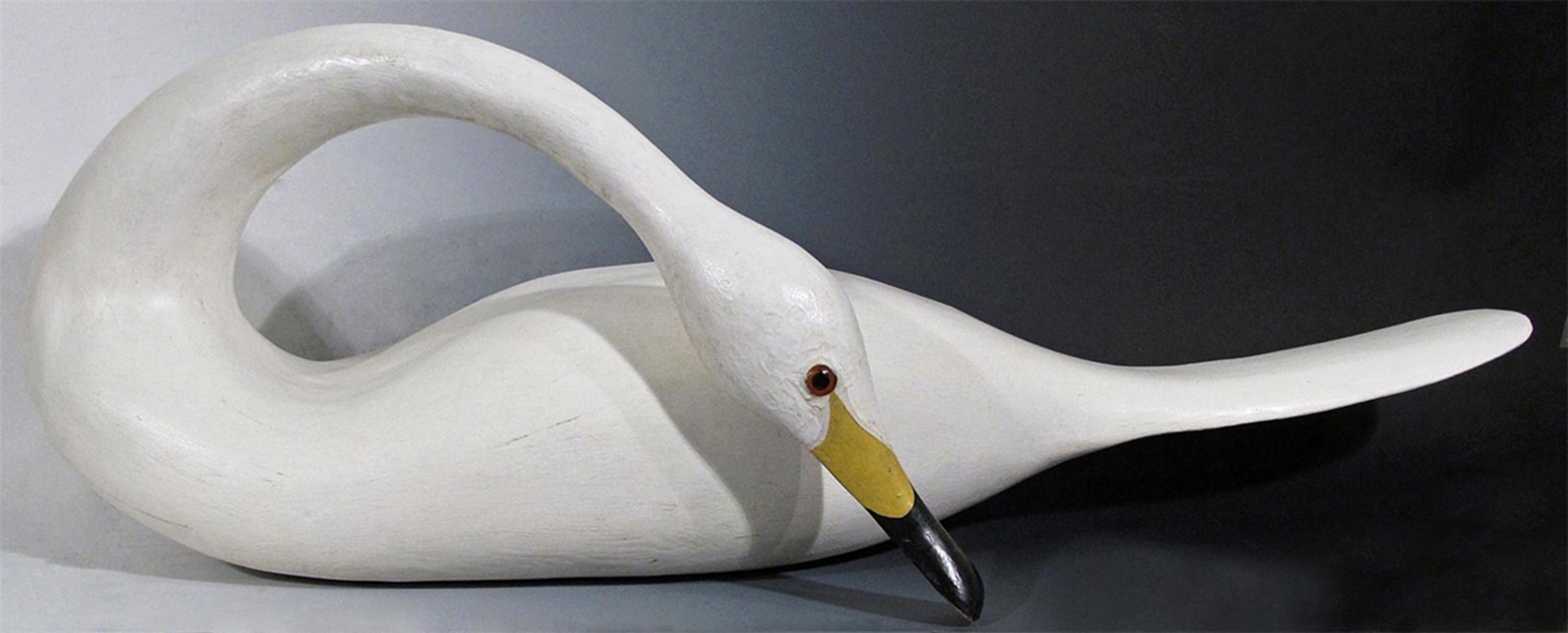 ‡Guy Taplin (b.1939) Preening Swan Signed Painted wood 106cm; 42in long and 36cm; 14in high