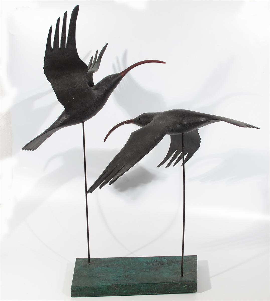 ‡Guy Taplin (b. 1939) Pair of Courting Choughs Both signed and titled Carved and painted...