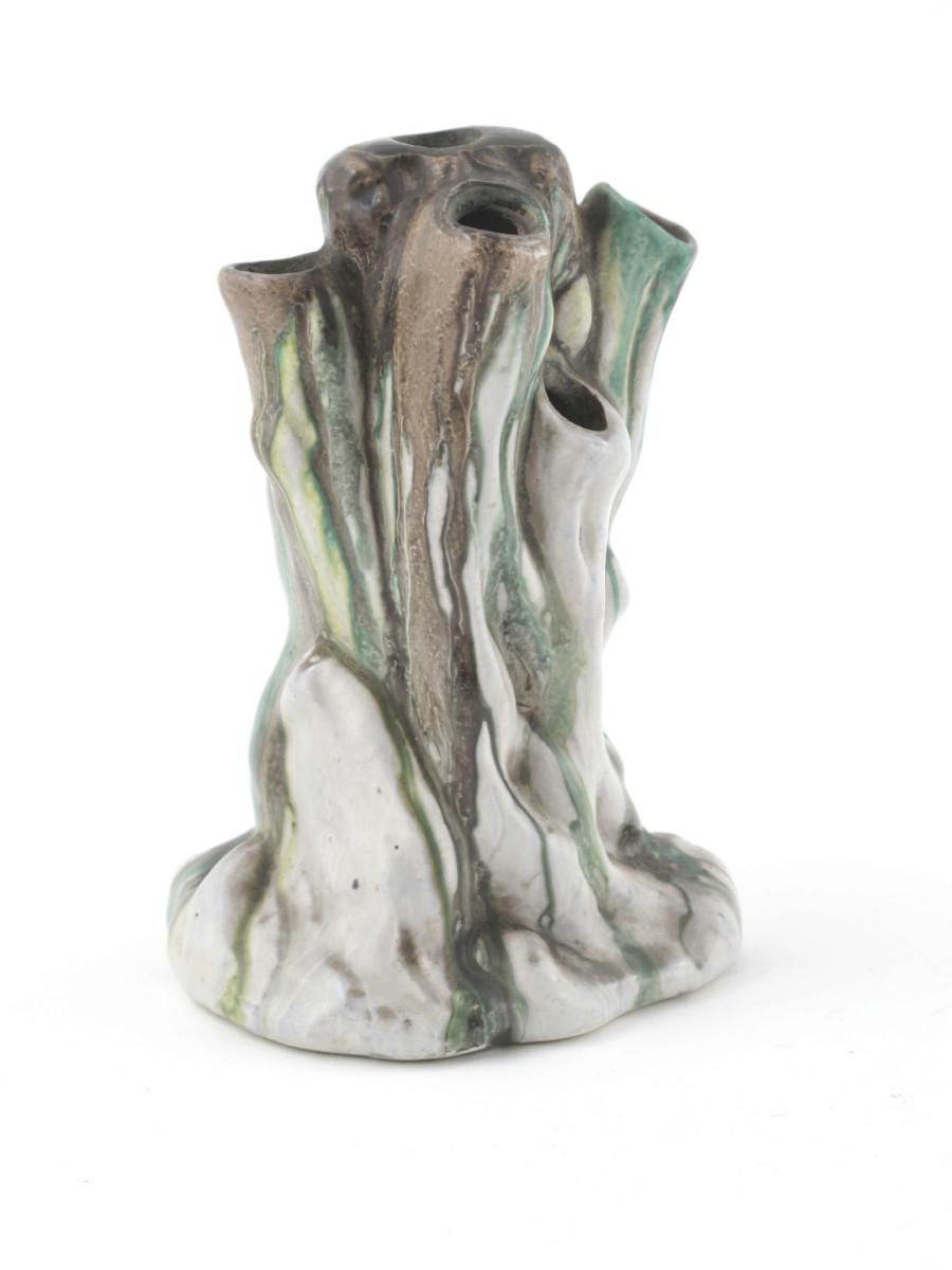 A Clarice Cliff Bizarre flower centrepiece, covered in a running Delecia glaze printed marks 12cm. high