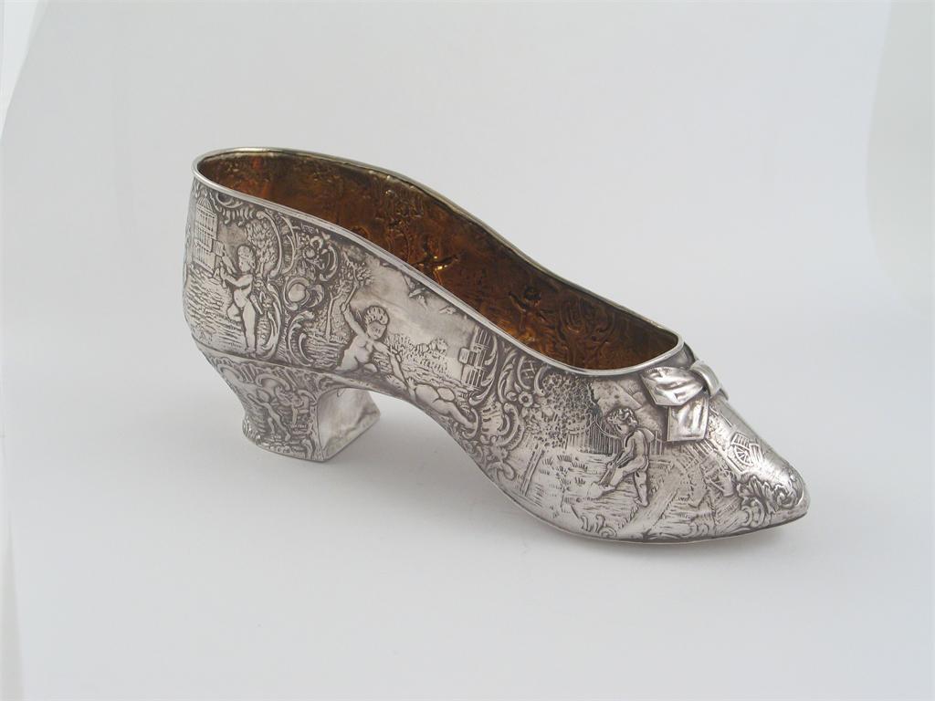 A late 19th century continental decorative model of a ladies shoe