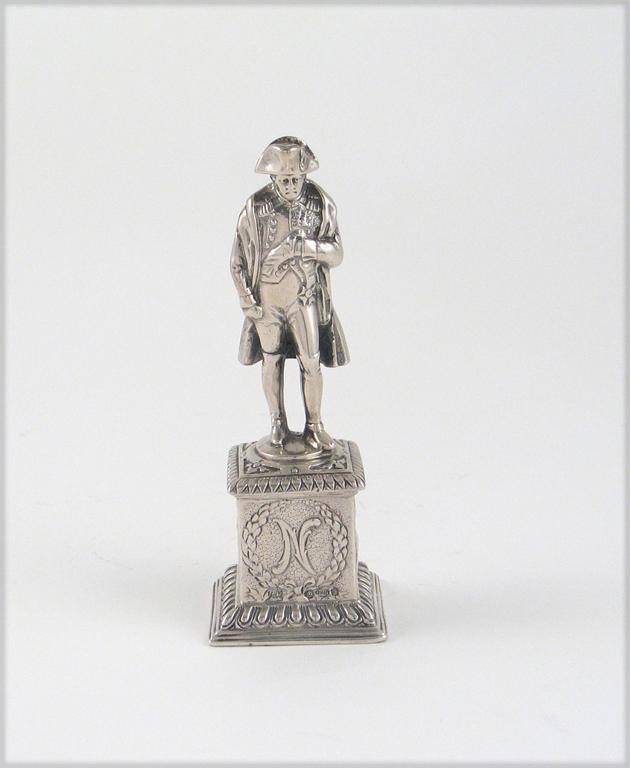 A small cast figure of Napoleon, on a plinth with Import marks for London 1907, 4.5in (11.2cm) high, 3oz.