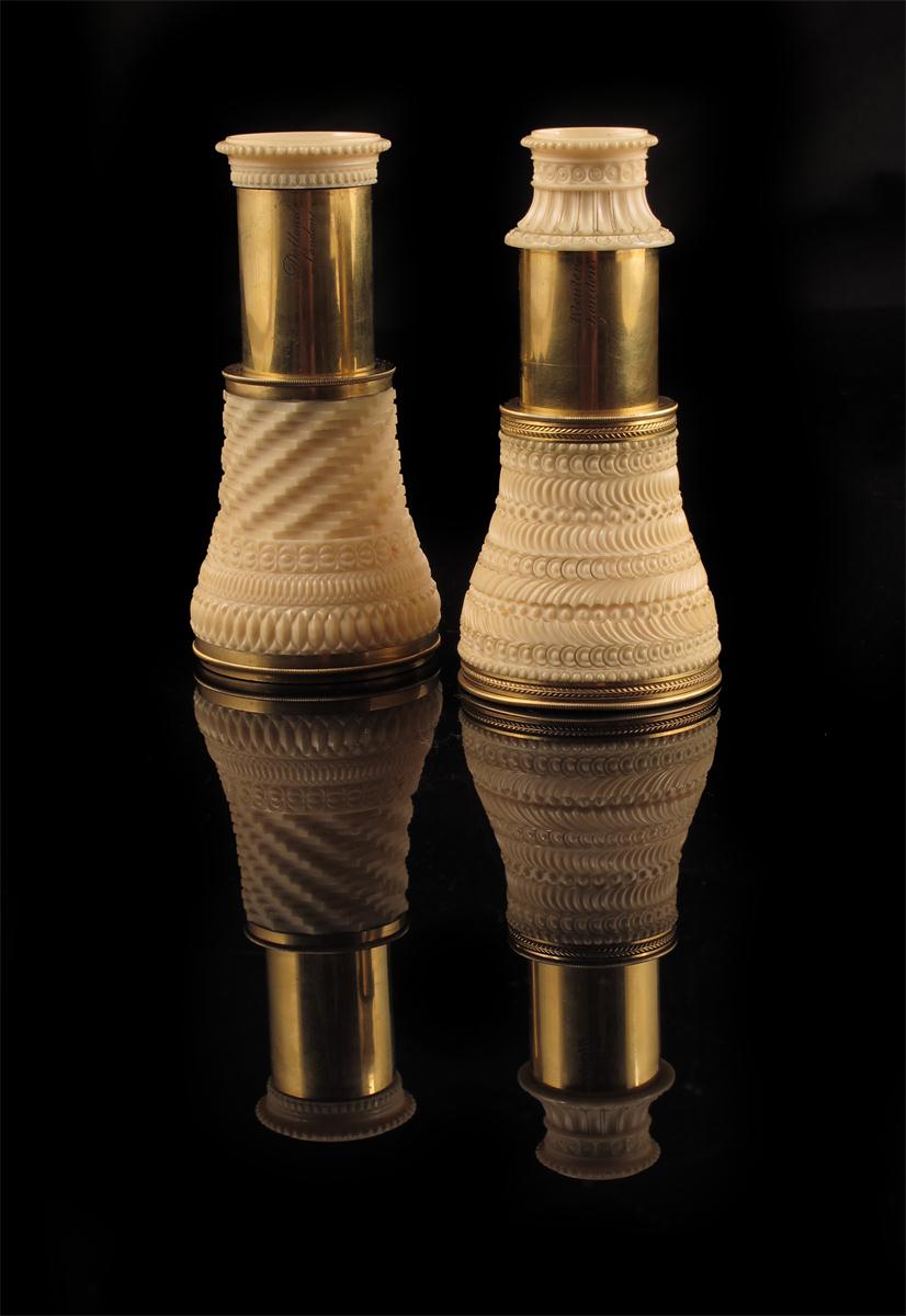 An early 19th century gilt brass and ornamentally turned ivory spyglass
