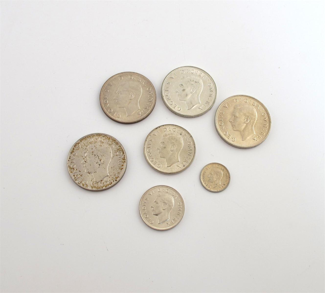 George VI, Silver coinage, Crown, 1937, Halfcrowns, Florins, Shillings, both types, Threepences. Good very fine to extremely fine. (qty)