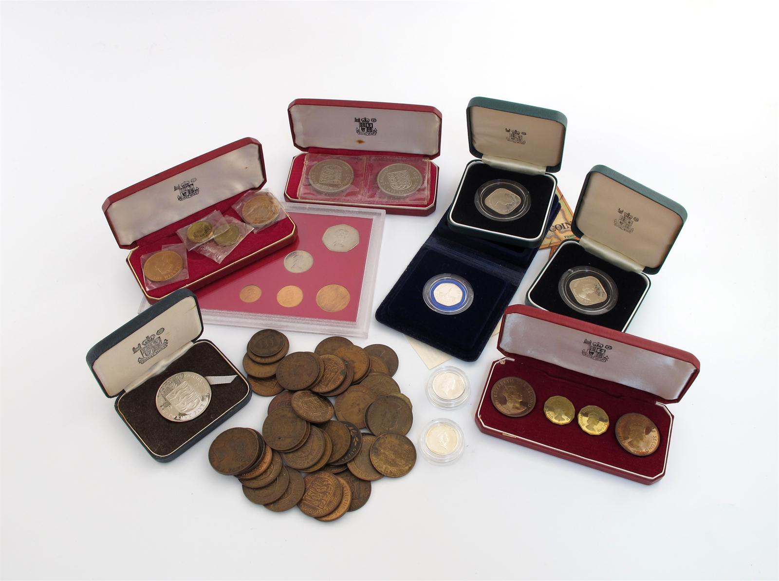 Jersey, Proof Crowns Set, and Proof 4 coin Sets (2), 1966, Proof Pounds (2), 1981, Proof Piedfort 20-Pence, 1982, unofficial currency year set, 1980; Guernsey, Proof Crown, 1972; Proof Pounds (2), Alderney, 1995 and Guernsey, 1997; sundry copper and bronze Channel Islands coinage. Proofs mint state. (qty)