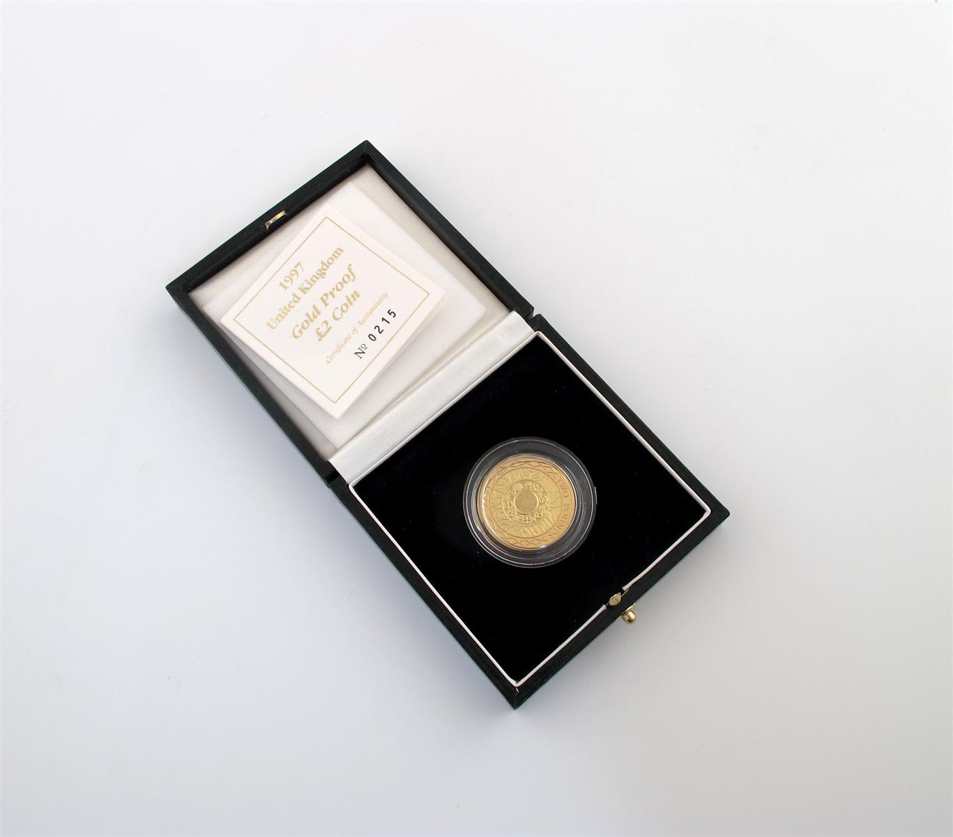 Elizabeth II, Gold Proof Two-Pounds, 1997, in case, with certificate (0215). Mint state.