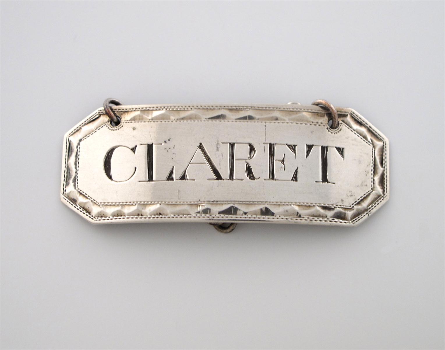 rectangular form, bright-cut decoration, incised 'CLARET', length 5.2cm.