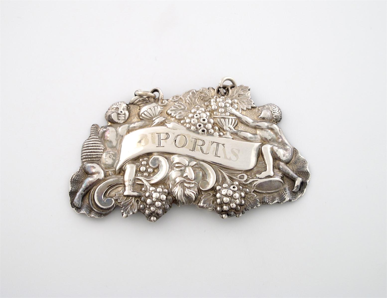 shaped form, with Bacchanalian revellers, and trailing vines, retitled 'PORT', length 6.2cm.