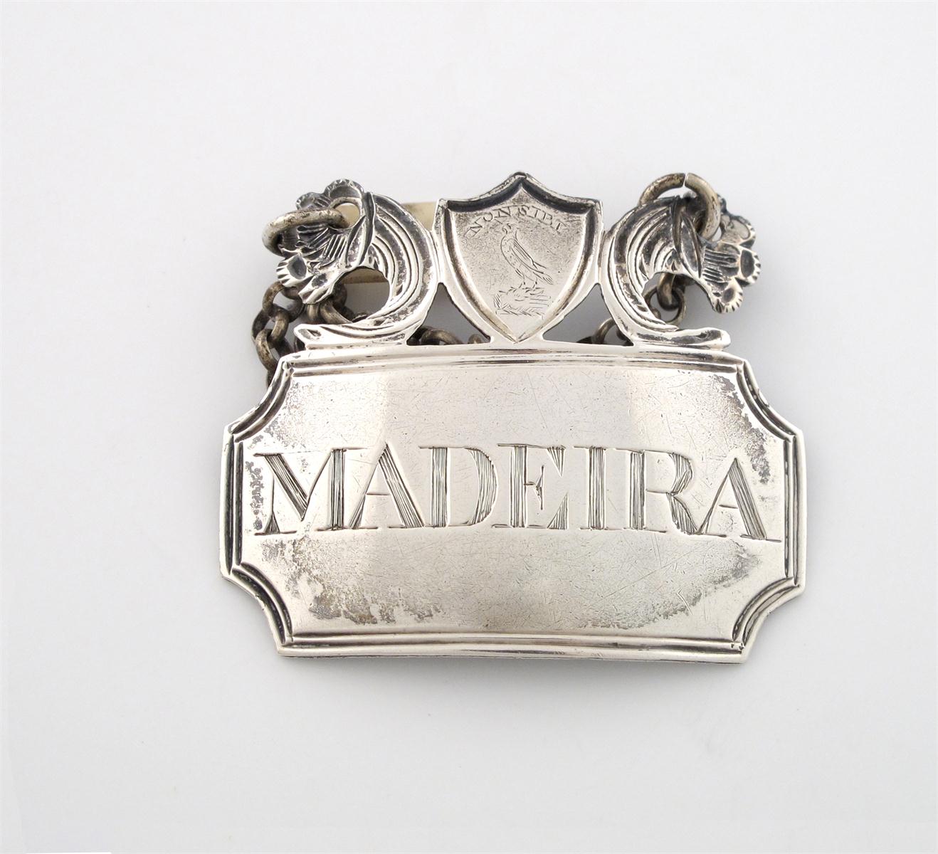 A George III silver wine label