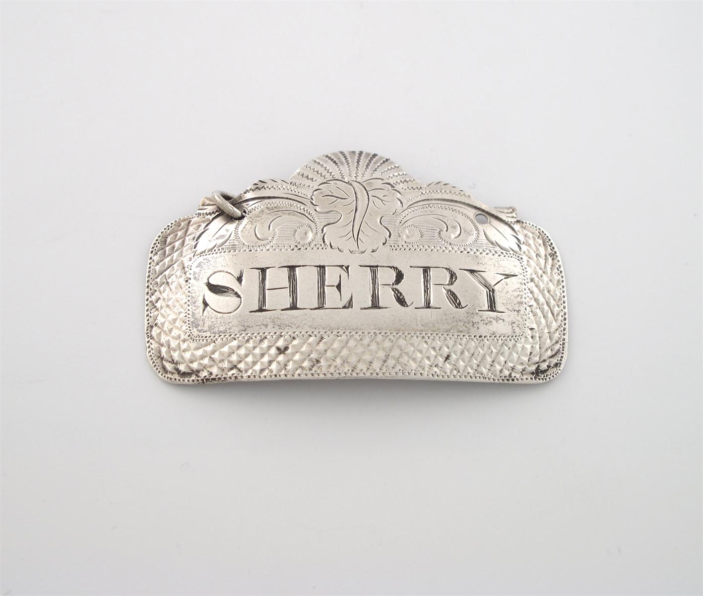arched rectangular form, foliate and cut border, incised 'SHERRY', length 5.3cm.