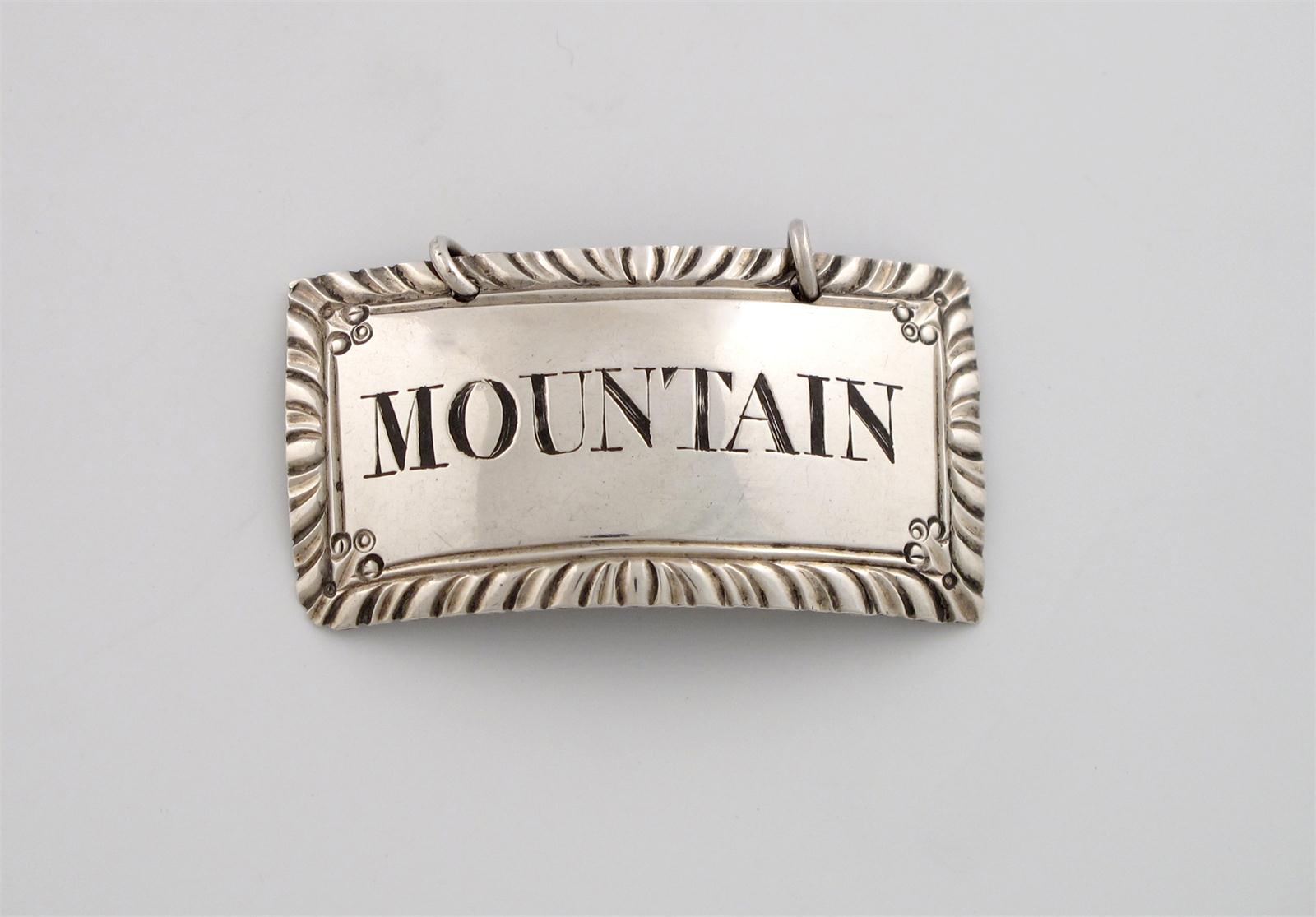 A George III silver wine label, by Maragret Binley, London circa 1770, rectangular form, gadroon border, incised 'MOUNTAIN', length 4.9cm.