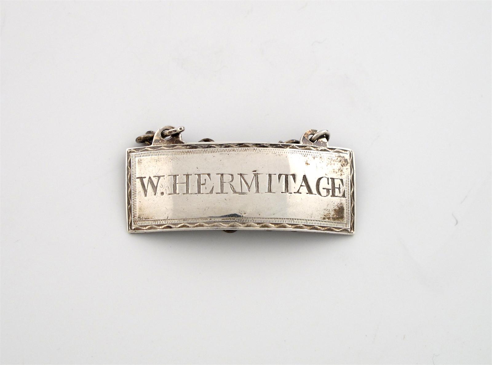 rectangular form, Bright-cut border, incised 'W. HERMITAGE', length 3.7cm.