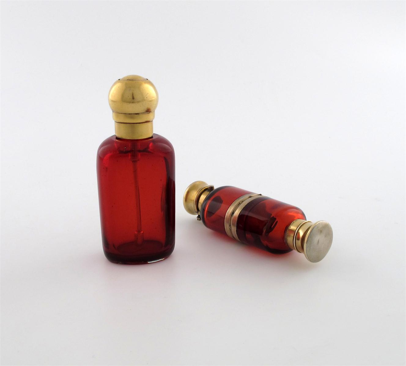 A Victorian silver-gilt mounted double-ended red glass scent bottle,