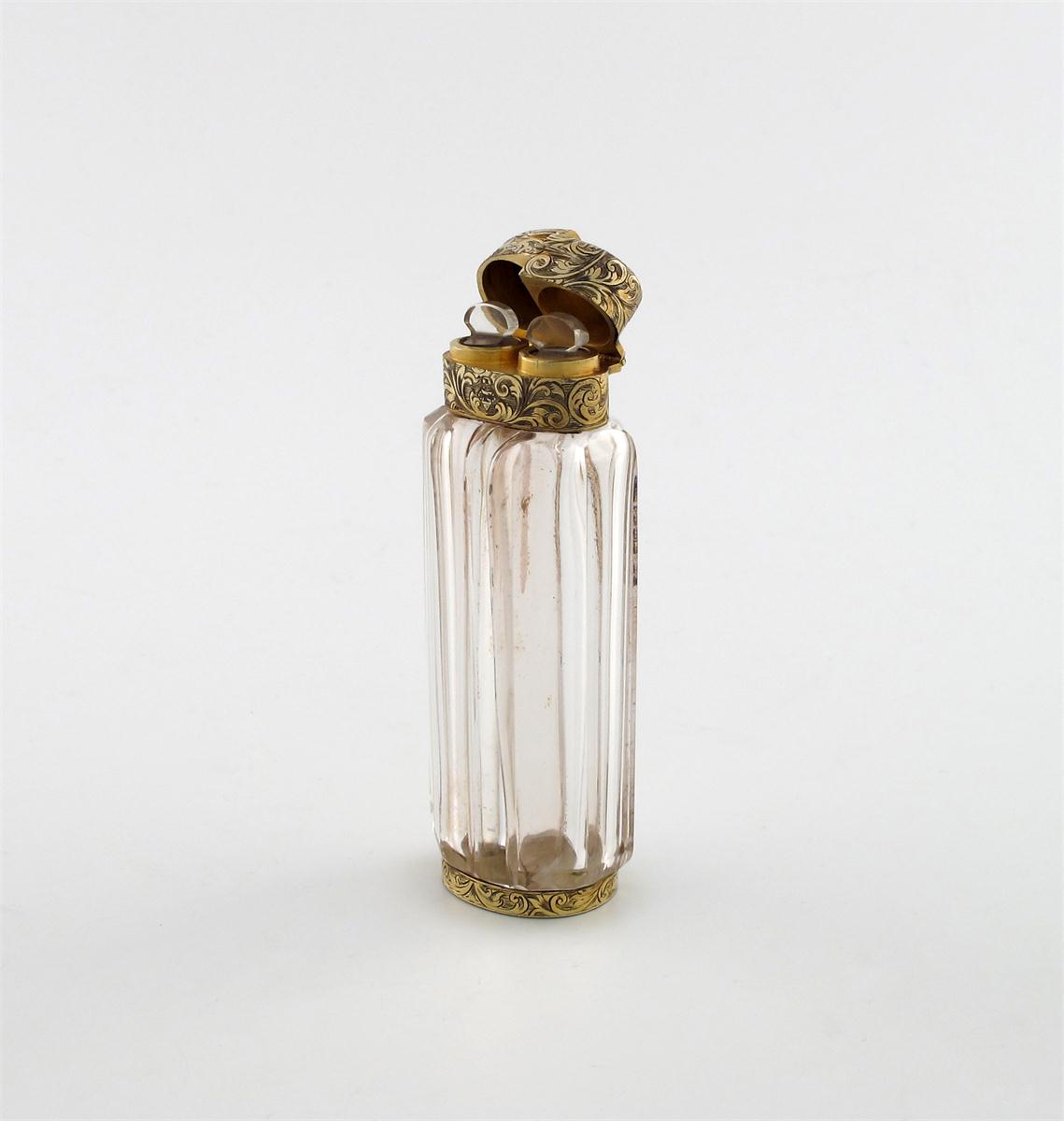A Victorian silver-gilt mounted double scent bottle,
