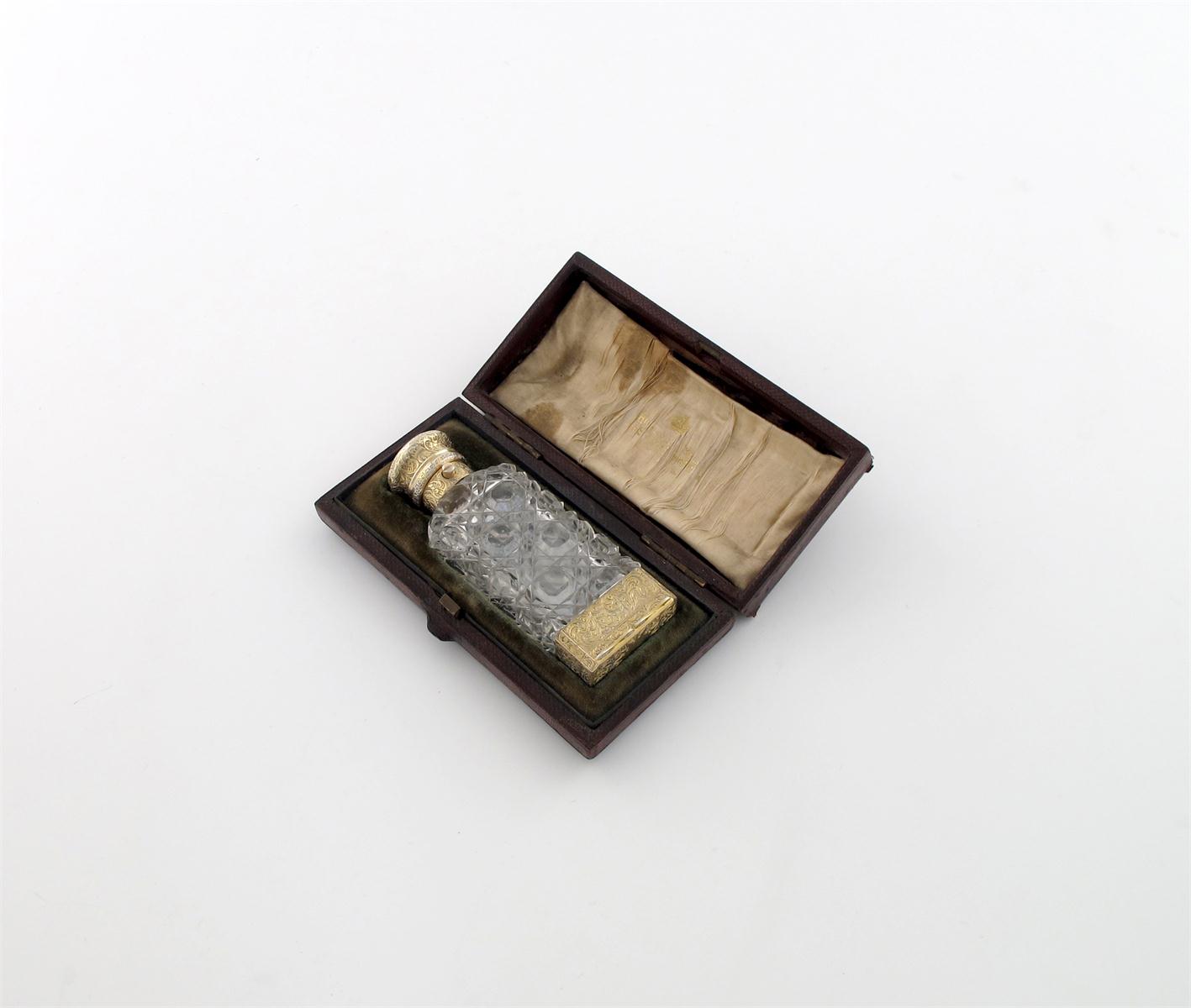A Victorian silver-gilt mounted scent bottle / vinaigrette,