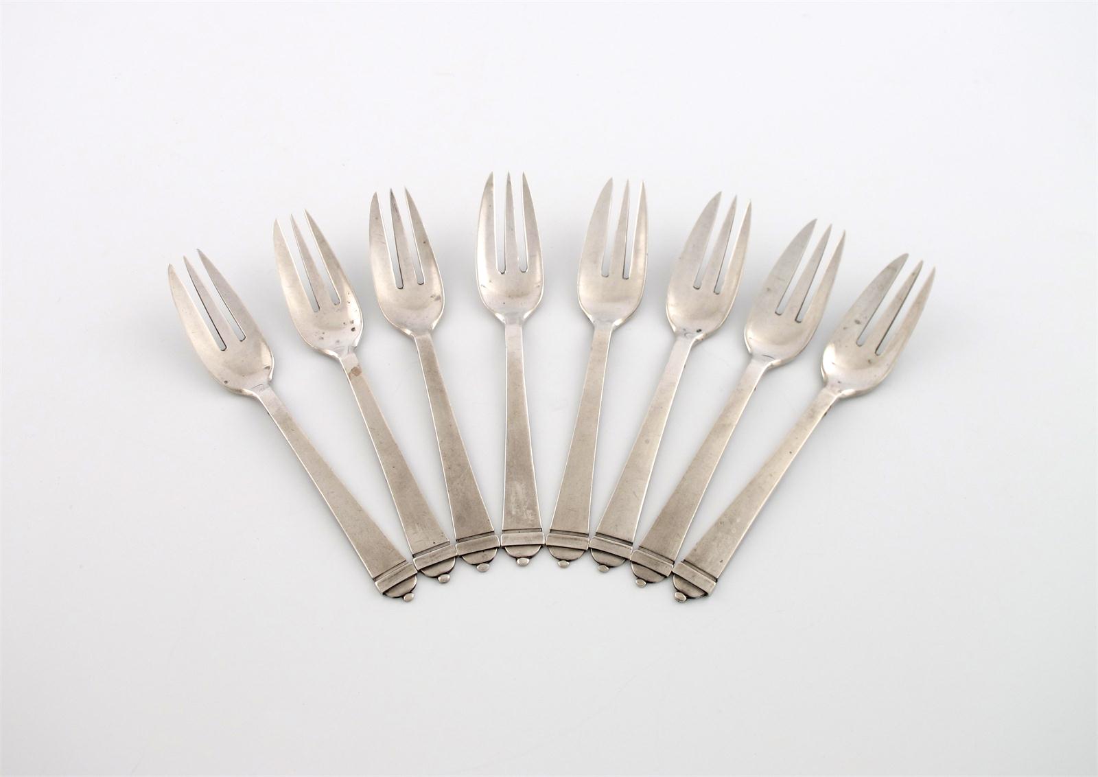 in the Georg Jensen manner, three pronged tines, approx. weight 6.3oz. (8)