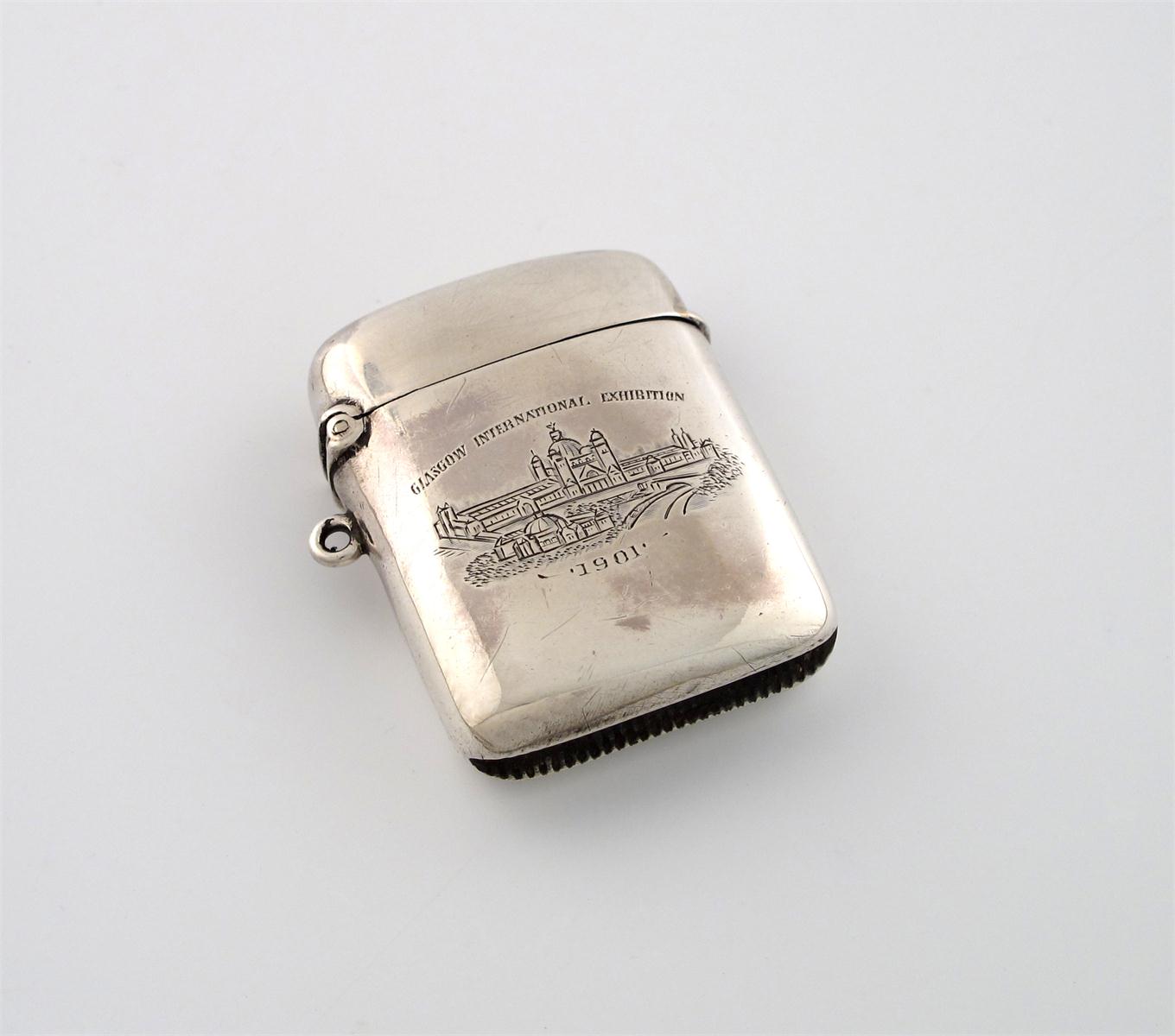An Edwardian silver vesta case, Glasgow International Exhibition 1901,