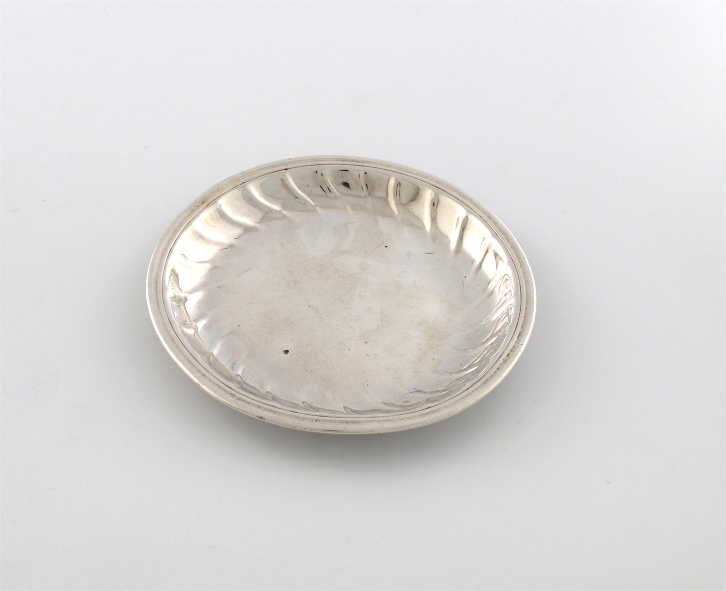 circular form, fluted decoration, diameter 12.3cm, approx. weight 3.4oz.
