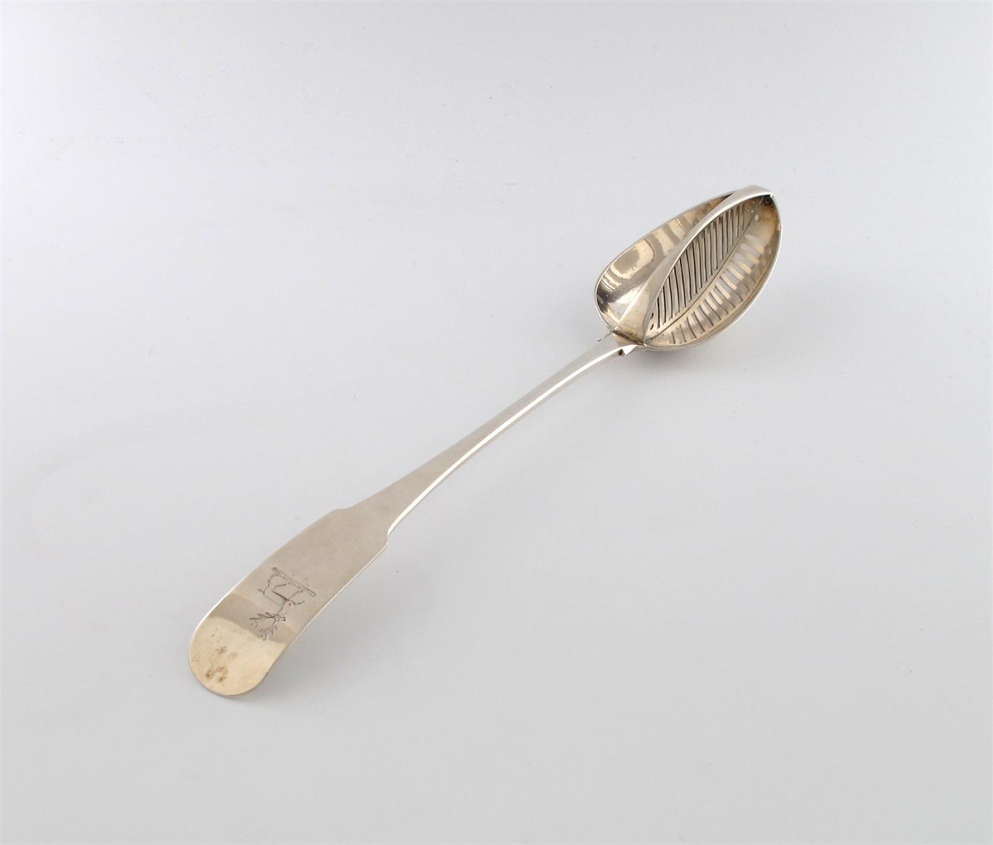 A George III Irish silver Fiddle pattern straining spoon
