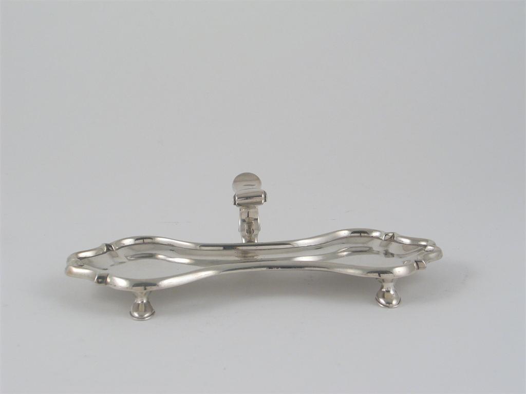 A George II waisted snuffer tray, with a shaped and moulded border, by James Gould, London 1733, 7.5in (19cm) long, 8.5oz.