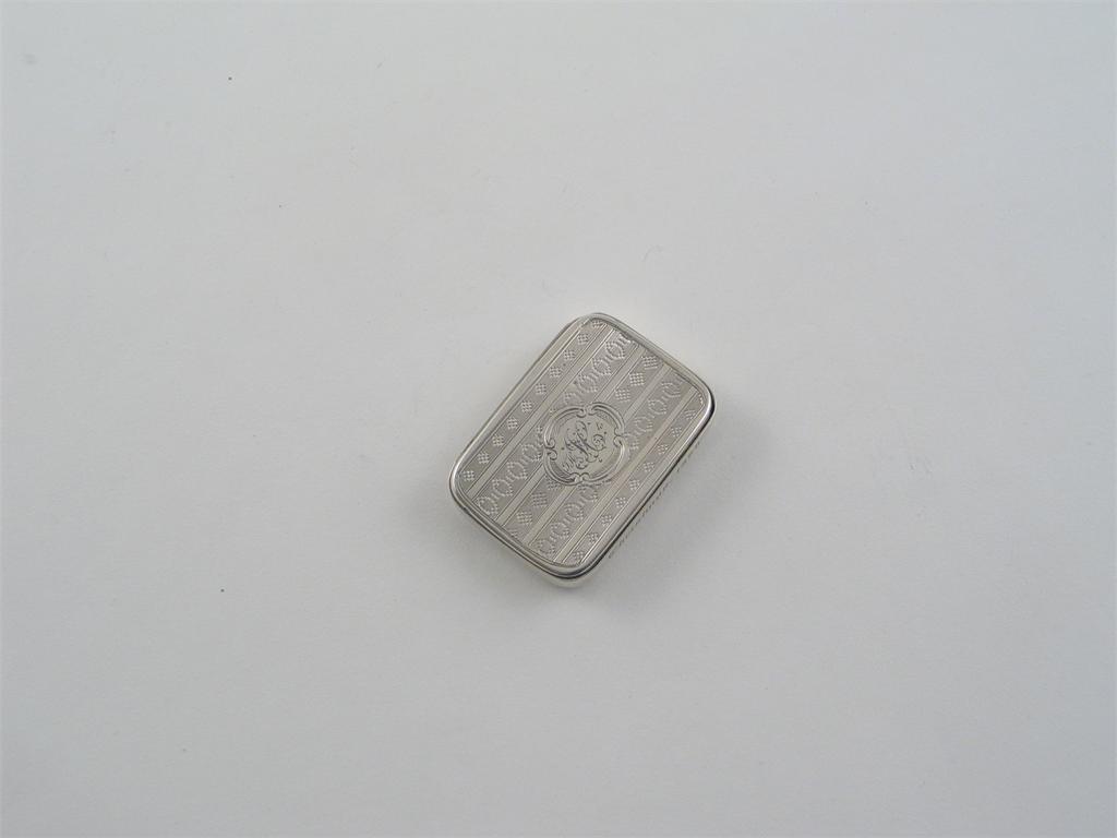 A Victorian vesta case, with engine turning and a pivoting cover, initialled and inscribed "CHRISTMAS 1868", by R. Thornton, Birmingham 1866 (gilt interior), 1oz.