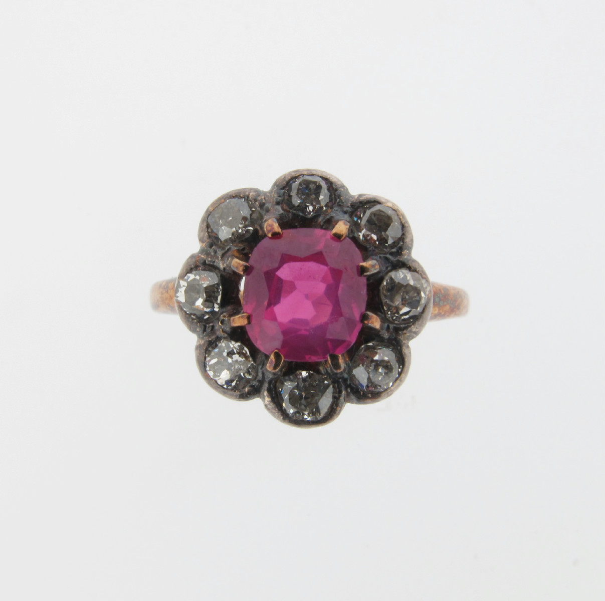 A pink sapphire and diamond set cluster ring
