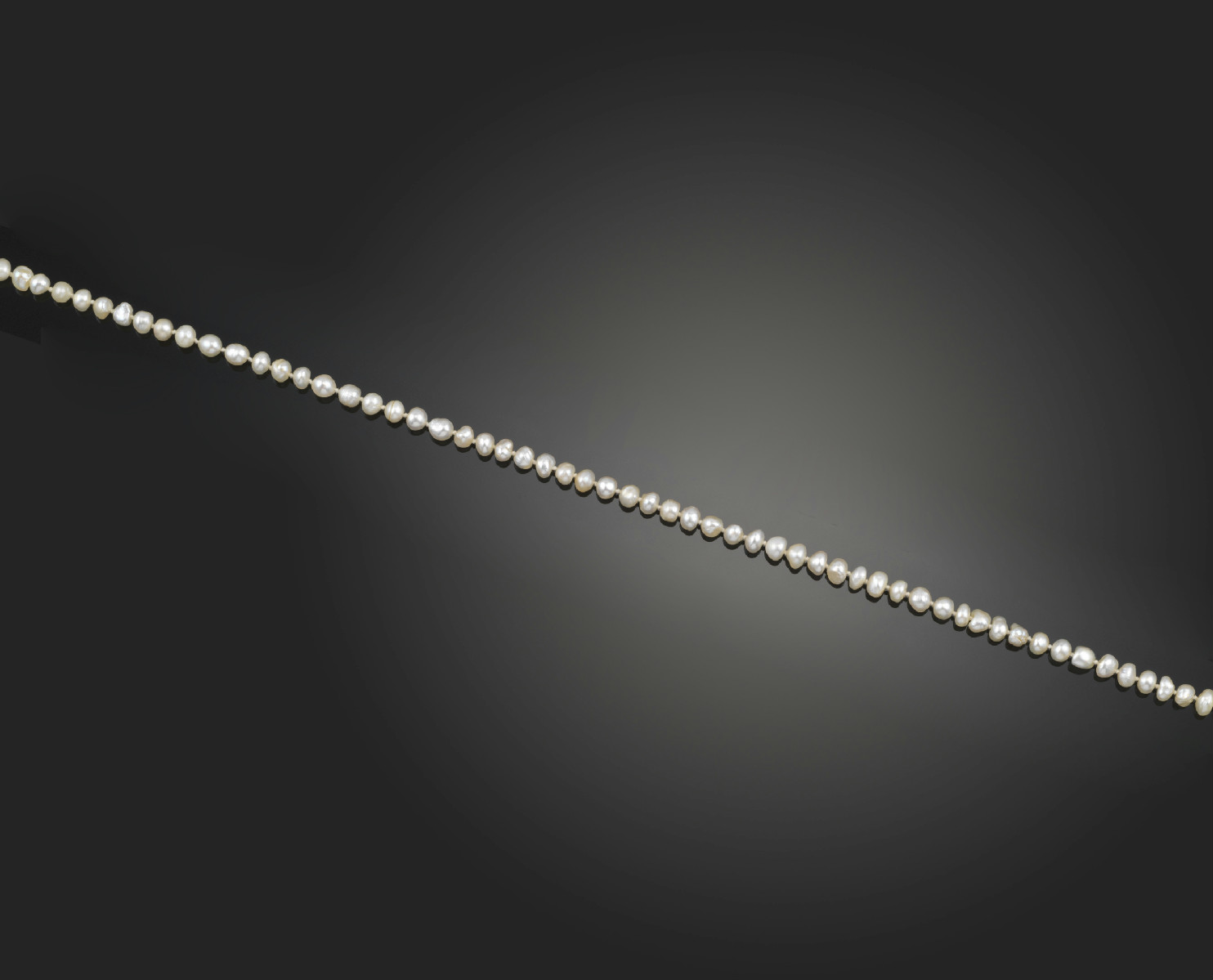 A single row pearl necklace, 143cm. Plain clasp. Accompanied with certificate number 06196 from The Gem and Pearl Laboratory dated 4th September 2012 stating that the 325 pearls graduate from 3.3mm to 4.8 - 5.0mm, weigh 31.34g in total are are natural saltwater pearls.