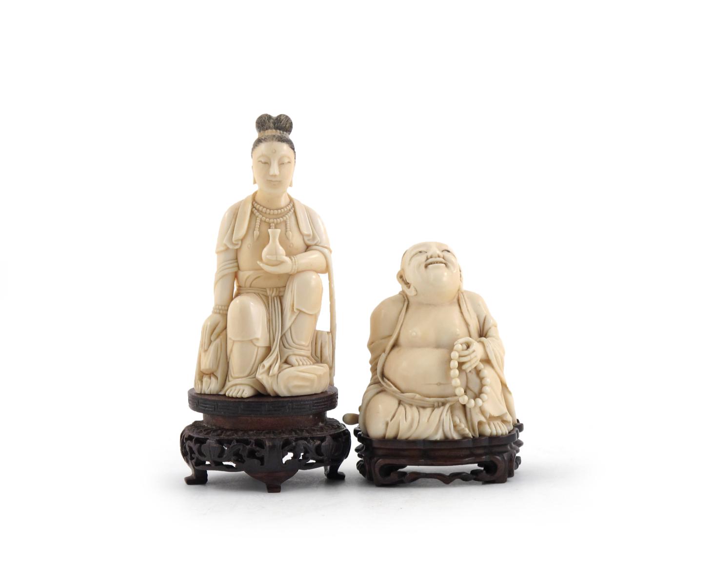 十九世紀 象牙雕觀音、布袋和尚 兩件