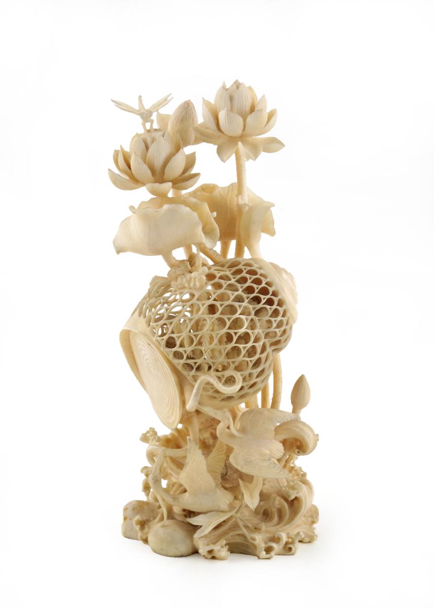 十九/二十世紀初 象牙雕荷塘清趣擺件