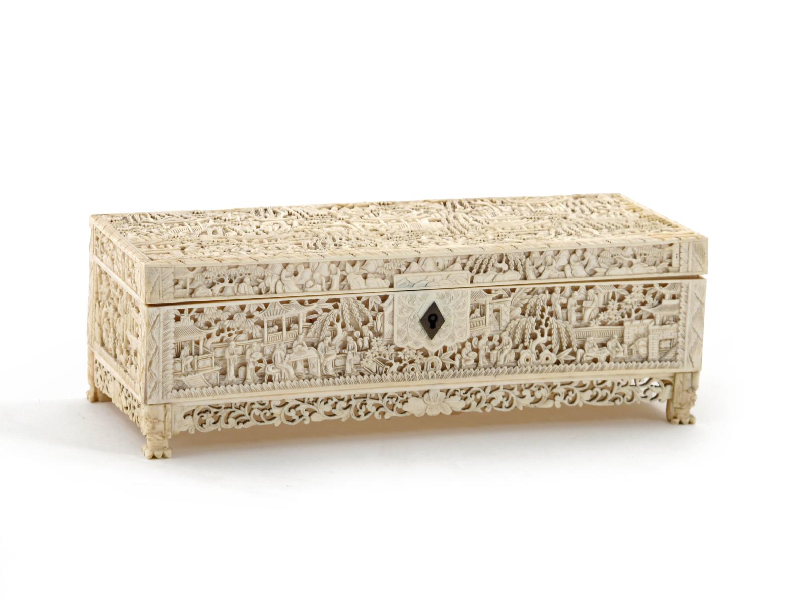 A Chinese Canton ivory rectangular box 19th century