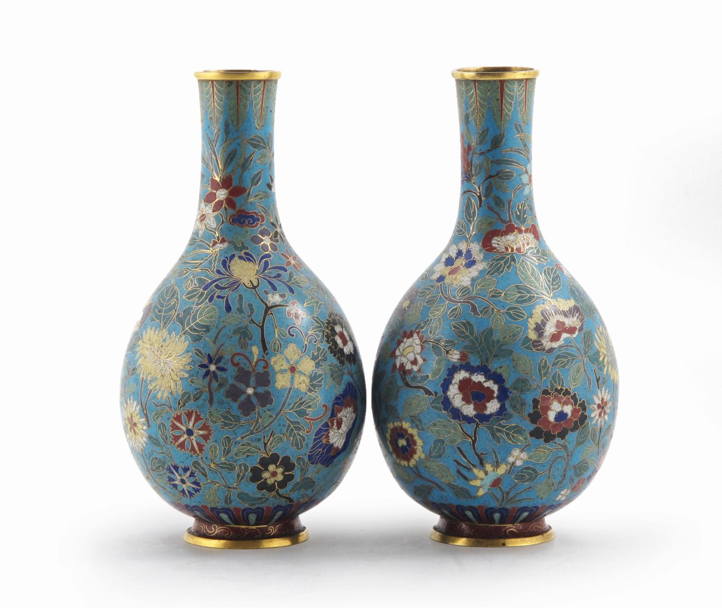 A good pair of Chinese cloisonné pear-shaped bottle vases 1st half 19th century